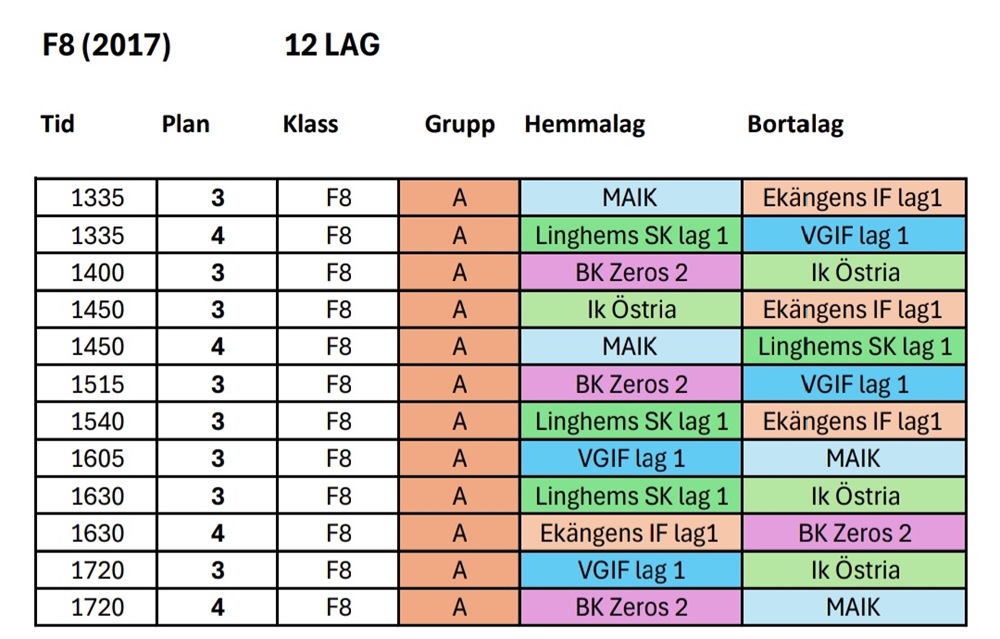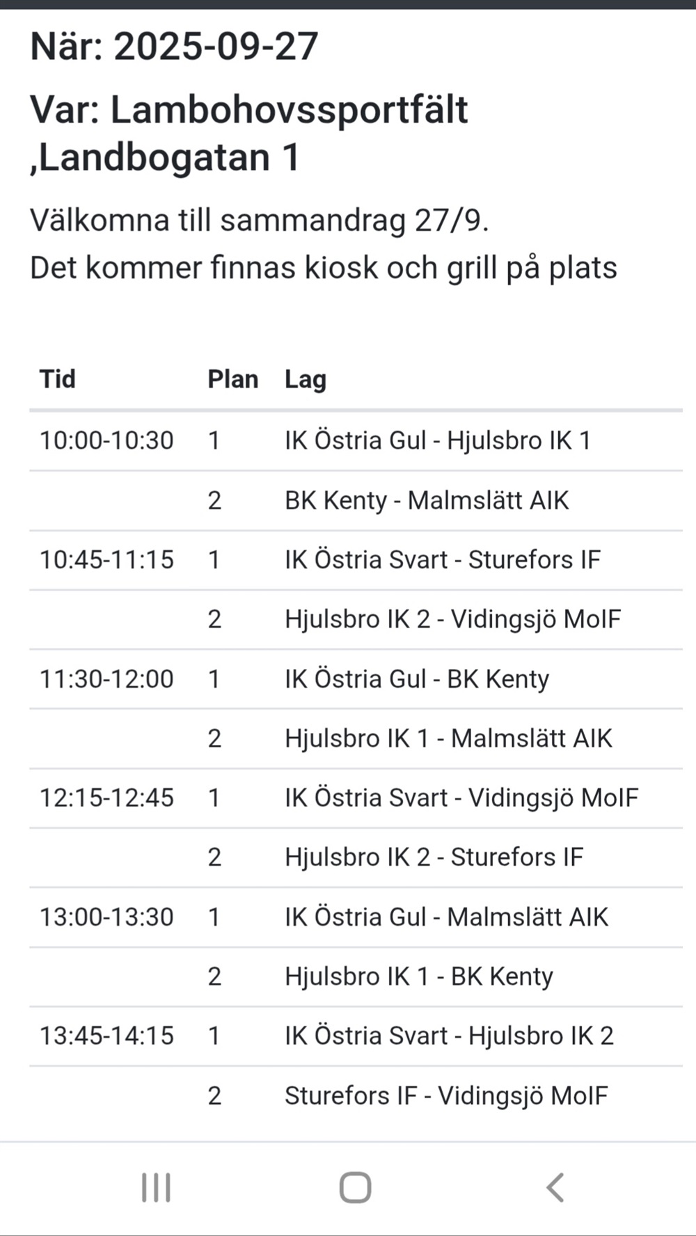 Återsamling: 20 min innan varje match, vid utställningsbilarna.