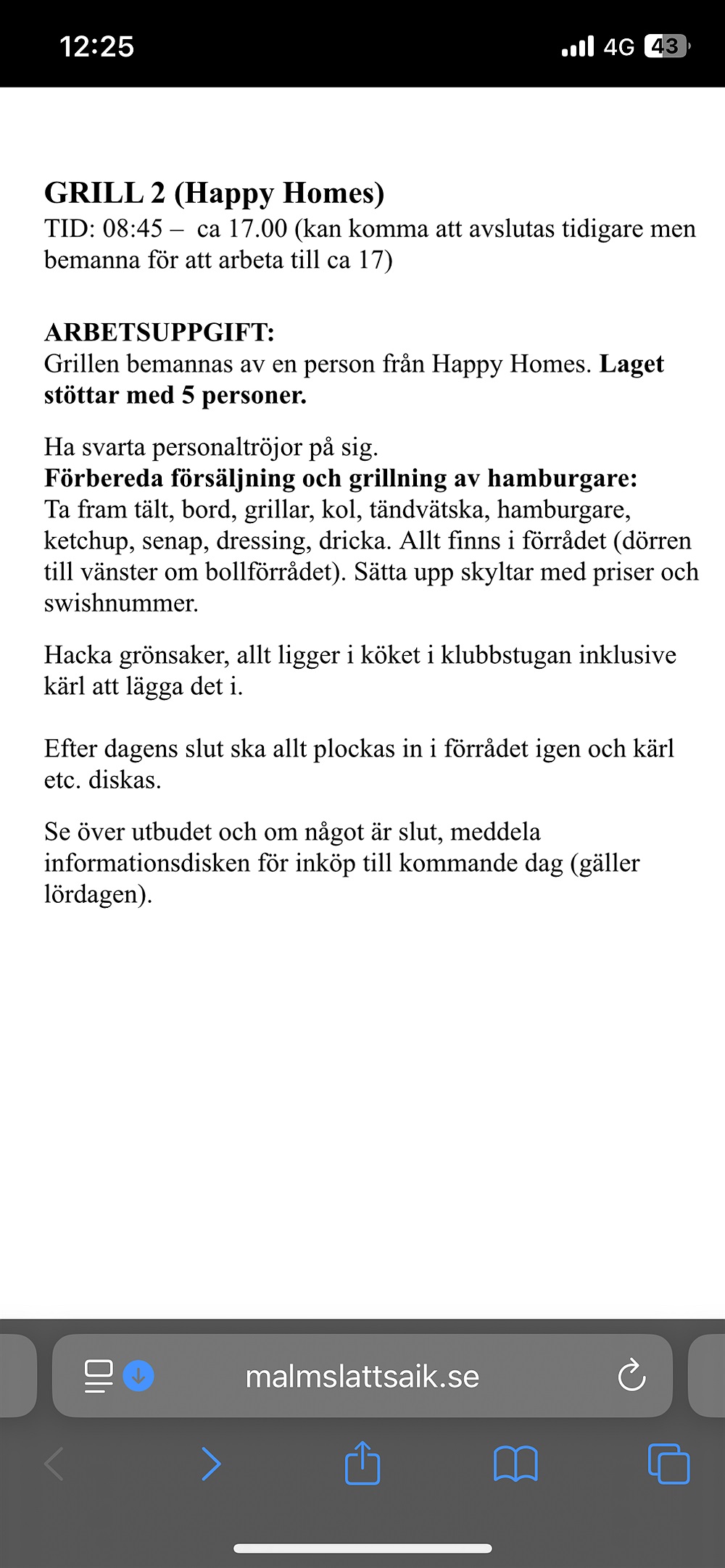 Nu är det dags för sista bataljerna innan vi stänger för säsongen. Vi ska som tidigare skrivet bemanna Happy Homes grillen under lördagen då vi också spelar matcher. Vi kommer va 7 st per pass vilket kommer möjliggöra att man kan se sitt barn spela några matcher iaf. Arbetspassen är 08.45-12.45 12.45- ca 17 (oklart när det går att plocka ihop)